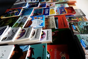 Contacontos, troco de libros e a escritora Sandra Estévez, nos actos do día do libro en Atios